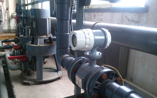 由于測量導管處在磁場中,為了讓磁力線能順利地穿過測量導管進人被測介質(zhì)而不被分流或短路,*先,測*導管必須是非導磁材料制成;其次,為了減小電渦流,測量導管一般應選用高阻抗材料,在滿足強度要求的前提下,管壁應盡*薄;*三,為了防止電極上的流*信號被金屬管壁所短路.在測量導管內(nèi)側應有一完整的絕緣襯里。襯里材料應根據(jù)被測介質(zhì),選擇其有耐腐蝕、耐腳損、耐高沮等性能的材料。常用材料有聚氨腸橡膠(60攝氏度).板丁橡膠(70攝氏度)、聚四氟乙姍( 120攝氏度 )等。