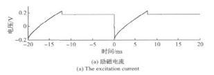 實驗結(jié)果表明,高壓源向低壓源切換后,三端穩(wěn)壓器的工作特性致使的電流波動和低壓源供電情況下的恒流控制,會大幅延長勵磁電流的穩(wěn)態(tài)響應時間。圖8所示勵磁電流約在17ms左右進入穩(wěn)態(tài),圖9所示勵磁電流的穩(wěn)態(tài)響應時間約為12ms。這表明,在采用三端穩(wěn)壓器搭建恒流控制電路的情況下,電流旁路電路能有效克服三端穩(wěn)壓器工作特性的影響,并能方便的實現(xiàn)電流超調(diào),加快勵磁電流的響應速度。