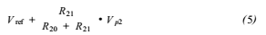整個電路的工作過程為:當P2.9為高電平時,Q1、Q2、Q3、Q4導通,此時Q5的基極電流為零,Q5截止,此時P2的端口2輸出+24V的電壓。此時P2.8為低電平,Q6、Q7、Q8、Q9,此時有電流流經(jīng)Q10基極,并使其基極和發(fā)射級導通,Q10的功能相當于一個二極管的作用,此時P1端口沒有電壓輸出。那么,A/D轉(zhuǎn)換器的參考輸入端Vref(+)為: