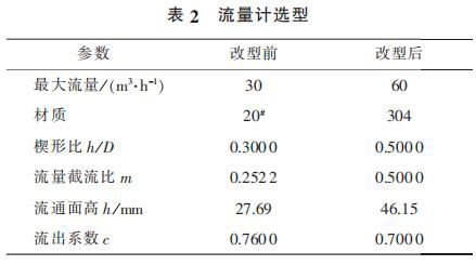2) 為了解決泵出口流量計(jì)頻繁泄漏以及流量較低不能滿足工藝需求的問(wèn)題,更換新型流量計(jì),其相關(guān)參數(shù)見(jiàn)表 2。 更換后的流量計(jì)運(yùn)行 4 000 h后未出現(xiàn)泄漏現(xiàn)象。