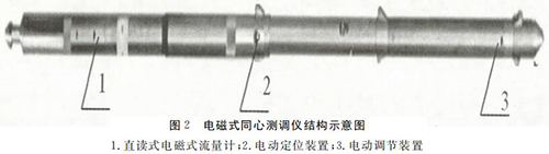 電磁式同心測調儀是同心分層注水工藝技術的關鍵儀器,其設計理念:集成流量測試與水量調節(jié)于一體,實現(xiàn)測調同 步;動力傳遞設計為同心降速機制,機械結構簡單,動力傳遞效率高,測調穩(wěn)定性高。主要包括以下結構,如圖2所示。
