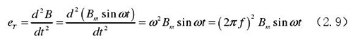 從上圖 2.5 中可以觀察到兩個(gè)電極、勵(lì)磁線圈、轉(zhuǎn)換器內(nèi)阻之間形成了一個(gè)閉合回路,將此回路稱之為初級(jí)繞組,從理論上進(jìn)行分析,磁力線 B 應(yīng)當(dāng)平行于勵(lì)磁線圈所產(chǎn)生的磁感應(yīng)線,但在實(shí)際的應(yīng)用過程中由于工藝差異,因此無法達(dá)到理想狀態(tài),會(huì)產(chǎn)生磁力線穿過勵(lì)磁線圈磁感應(yīng)線的情況,此時(shí)將會(huì)產(chǎn)生相應(yīng)的感應(yīng)電動(dòng)勢(shì),將此部分感應(yīng)電動(dòng)勢(shì)稱為變壓器效應(yīng)。此效應(yīng)同樣滿足于楞次定律,利用楞次定律進(jìn)行計(jì)算可得如下電動(dòng)勢(shì):