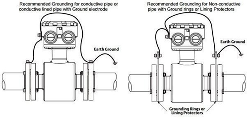 正確安裝流量管對于稀硫酸流量計中正確的SG至關重要。對于金屬工藝管道,正確安裝的流量管意味著不需要額外的溶液接地環(huán)或電極。對于非金屬管道或襯里配置,需要采用溶液接地方法,并且必須特別注意接地環(huán)或電極的連接和放置。下面提供了一些技巧,以確保將SG正確連接到電磁流量變送器。