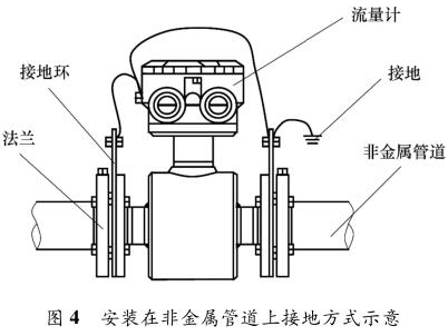 液體流量計安裝在金屬管道上,安裝時將金屬管道與液體流量計相連接,接地線再接入接地網(wǎng),如圖 3 所示。