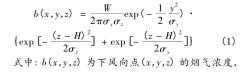 式中: b(x,y,z) = w × e(x,y,z),其中 e(x,y,z) 為二氧化硫濃度與循環(huán)流化床dn150渦街流量計(jì)煙氣排放源煙氣強(qiáng)度的比例系數(shù);f 為平均風(fēng)速,m/s; w 為地面空氣內(nèi)煙氣排放強(qiáng)度;σ x 為橫向擴(kuò)散系數(shù)受環(huán)境穩(wěn)定度與下風(fēng)向距離因素的影響程度。式(3)中描述的是基于時(shí)間變化的循環(huán)流化床dn150渦街流量計(jì)煙氣排放源煙氣排放強(qiáng)度計(jì)算模型。