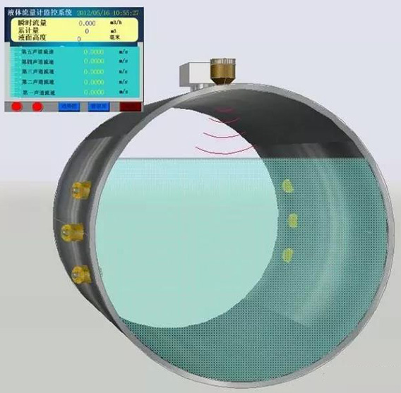超聲波流量計(jì)的工作原理是,借助時(shí)差式測(cè)量原理,通過(guò)一對(duì)超聲波探頭發(fā)射信號(hào)穿過(guò)中間介質(zhì)到達(dá)另一側(cè)管壁,被另一個(gè)探頭接收到,另一側(cè)探頭同樣發(fā)射信號(hào)被*一個(gè)探頭接收到。在這個(gè)過(guò)程中,由于信號(hào)的輸送時(shí)間受介質(zhì)流速的影響,所以,存在一定的時(shí)間差?;诖?,超聲波流量計(jì)借助相關(guān)公式計(jì)算出了相應(yīng)的流量值。