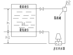 假設(shè)隔離液的重度為ρ2 (ρ2 >ρ1,并且隔離液不能與被測(cè)液體發(fā)生互溶)。