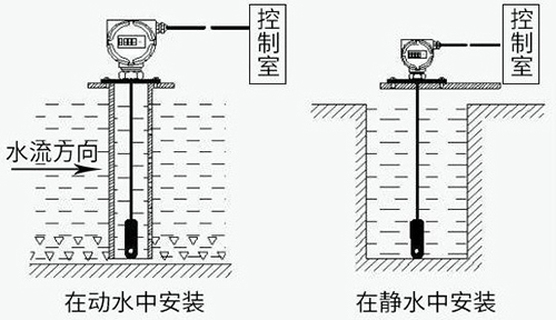 纜式靜壓液位計(jì)(靜壓式水位計(jì))通常投入直徑大于水位計(jì)直徑的的PVC管、鋼管,管道固定在水中,不同高度打若干小孔,以便水通暢進(jìn)入管內(nèi)。或者在底部加裝阻尼裝置,以過(guò)濾泥沙和消除動(dòng)態(tài)壓力和波浪對(duì)測(cè)量的影響。
