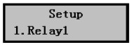 2) 按擊OK鍵,進入繼電器1設(shè)置菜單,如右圖所示。