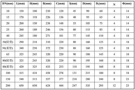 *DN10/DN50(輕型)/DN65/DN80(輕型)法蘭尺寸為 1.6MPa 標(biāo)準(zhǔn);其余口徑為 6.4MPa 標(biāo)準(zhǔn);